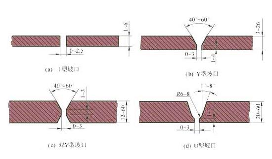 (1)v形坡口。这是常用的坡口形式,这种坡口便于加工,焊接时为单面焊,不用翻转焊件,但焊后焊件容易产生变形,常用于中厚板对接焊缝的焊接。