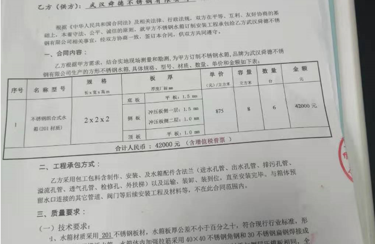 2、项目名称:SUS304不锈钢消防水箱,不锈钢保温水箱