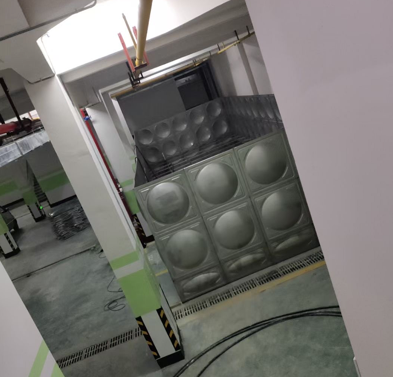 然后将不锈钢水箱箱体与内钢筋组装焊接,箱体安装顺序为先将底板与侧板拼接,设置内加强筋,先点焊拼接安装,然后对焊缝进行全焊。要采用氩气保护钨极氩弧焊焊接,满焊完成后需要对焊缝信息进行分析检测方法是否可以存在漏点。然后安装水箱顶盖板和人孔。