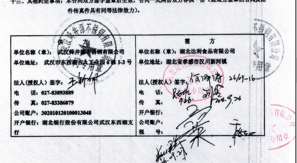 公司于2016年10月15日安装完毕达利食品有限公司156吨不锈钢水箱,附合同。