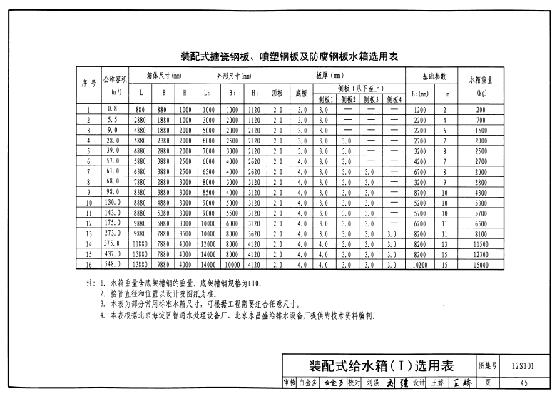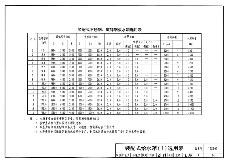 装配式不锈钢水箱图集一 (选用表) 12S101