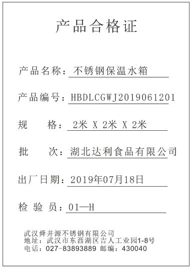 不锈钢保温水箱合格证